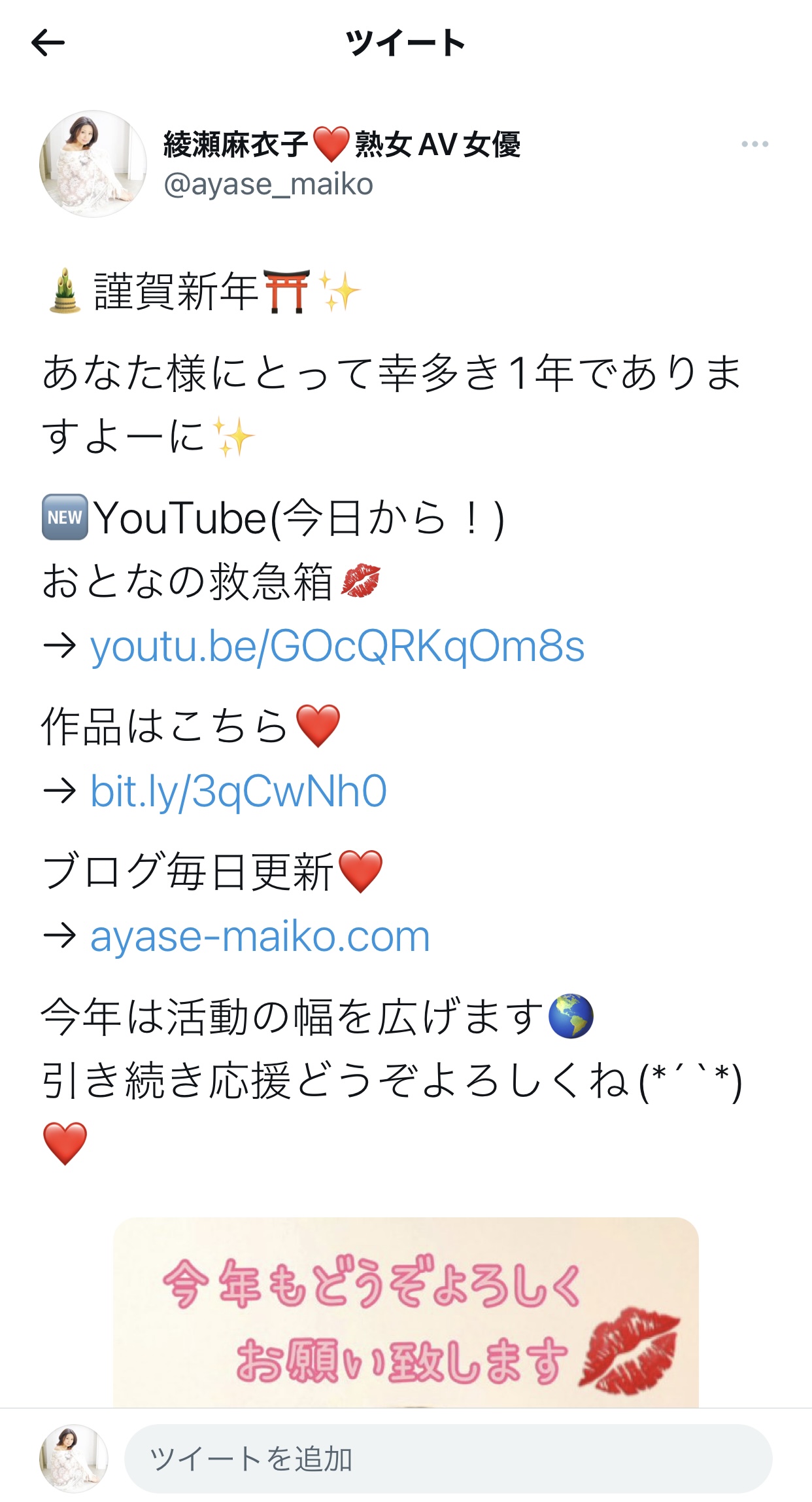 今年は活動の幅を広げ、AV出演は変わらず続けさせていただきながら、世界へ向けて発信していきたいと思っております!!!!!