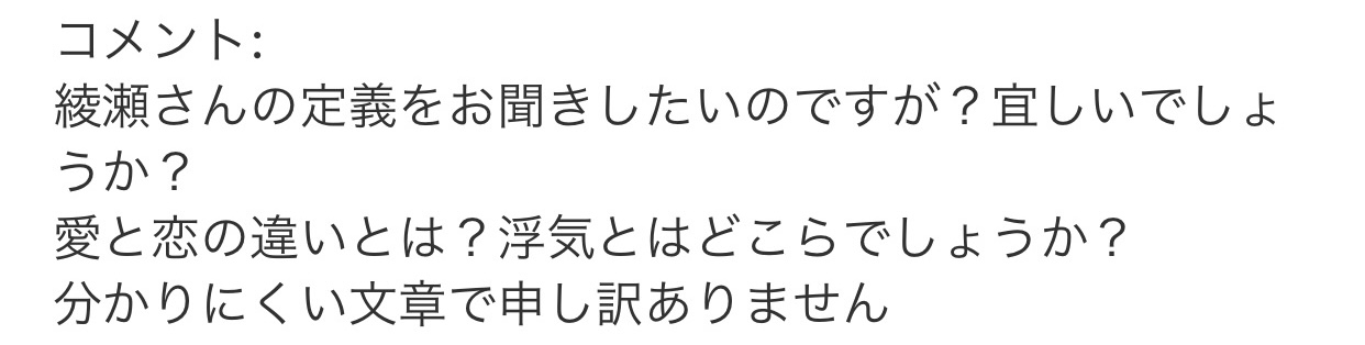 以上、綾瀬麻衣子流の定義でした(*´`*)❤