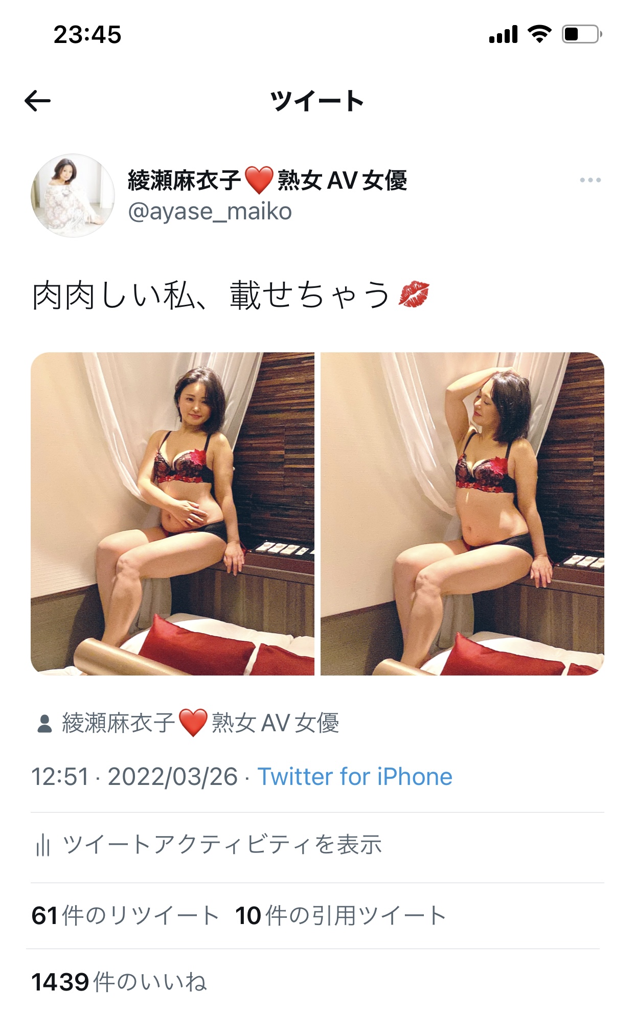 こんばんは、綾瀬麻衣子です(*´`*)❤